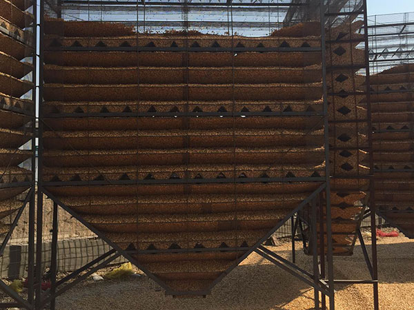 糧食風(fēng)干倉(cāng)變平面曬為立體晾曬,充分利用自然空間 玉米風(fēng)干倉(cāng)廠家,極大的節(jié)省占地面積。在自然晾曬中糧食全部離開(kāi)了地面,受雨雪天氣影響極小,而且糧食品質(zhì)不會(huì)受到污染及霉變。同時(shí)利用谷類(lèi)作物濕漲干縮的原理自動(dòng)翻糧,節(jié)省了人工翻動(dòng),減少了原糧的破碎率;糧食風(fēng)干倉(cāng)在常溫下自然風(fēng)干,保證了原糧的自然營(yíng)養(yǎng)成分;時(shí)間效率是地面晾曬糧食的2-4倍。每噸糧食整曬費(fèi)與地面晾曬相比節(jié)省人工支出30元左右。